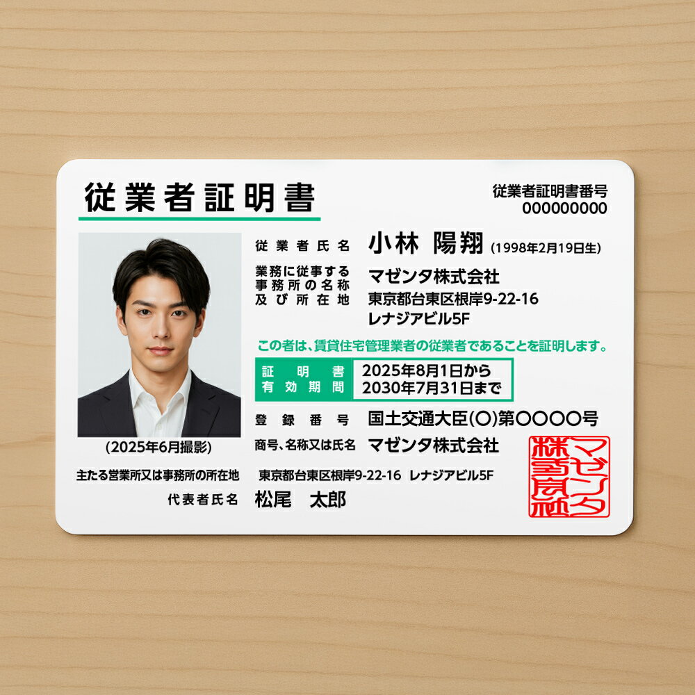 \期間限定最大50%OFF/日本製 宅建用【従業者証明書カード】不動産関連証明書 宅地建物取引業者の従業者証明書【UV印刷】1枚から印刷 プラスチックカードの従業者証を作成 約85mm×約55mm(角丸仕様)プレート 標識 宅建用 選べる書体 ※1枚のお値段となります